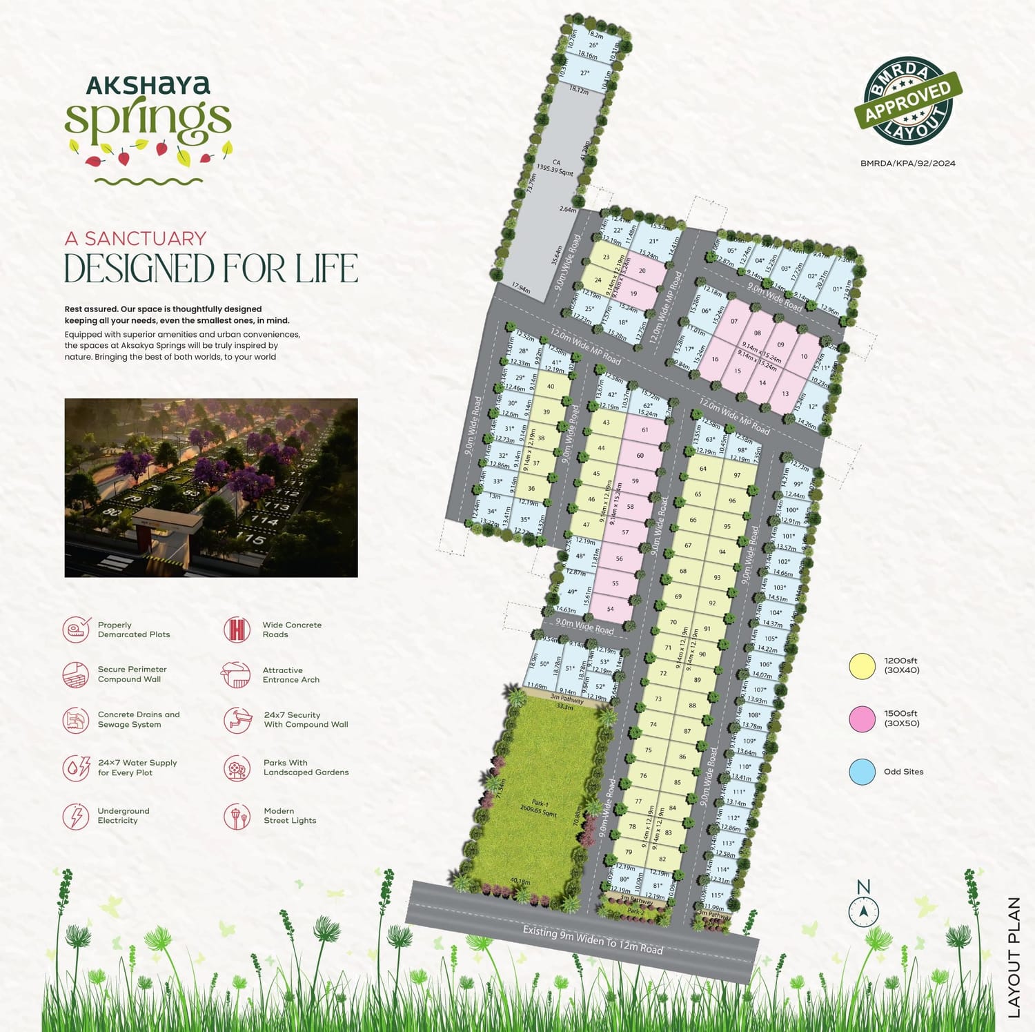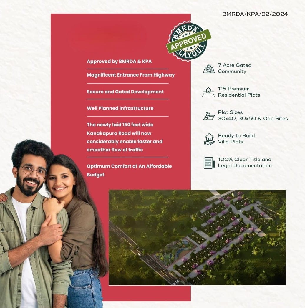 Akshaya springs is a premium developed plots located just 1.2 km from kanakapura bus stop. Akshaya Springs is attached to Highway. Akshaya springs is developed on 6.35 acers land. Akshaya springs is BMRDA Approved and also approved by kanakapura planning authority.mother teresa international school and podar international school are located near by.Plot size availabe are 30x40, 30x50 and odd sizes.
